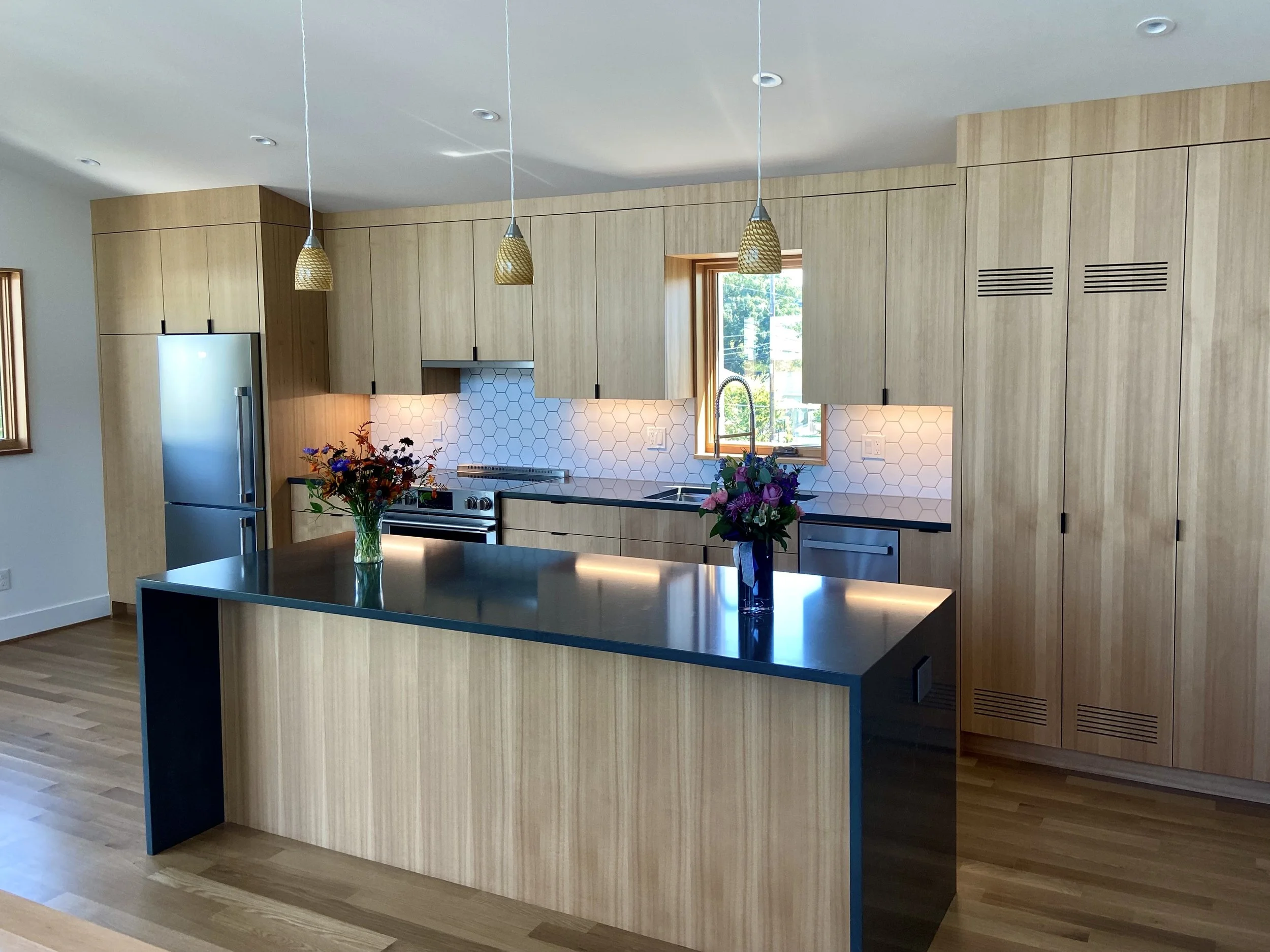 The Laird Residence and ADU is a small new construction house with attached ADU on a compact sub-divided lot in NE Portland. The project is both Earth Advantage Platinum Certified and Zero Energy Certified.